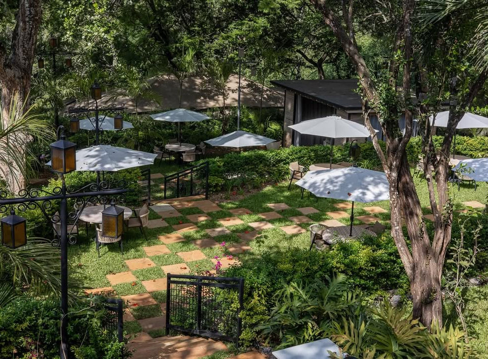The garden setting is ideal for guests seeking a controlled, premium environment with a focus on dining, conversation, and ambiance rather than large-scale production.